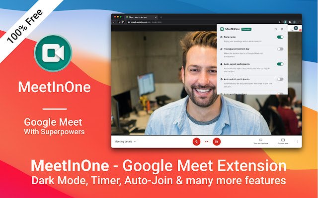 This extension is designed to improve your overall experience of using Google Meet. It brings features like Push-to-talk, auto-join meetings, Auto-mute audio and video, Auto-toggle captions, Picture-in-picture, A meeting timer, Dark mode, Save meeting links for quick access, and more. This a complete all-in-one feature pack extension.