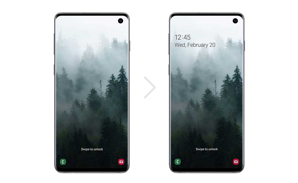 The smart lock screen on the One UI 2.0 automatically adjusts the color and format of the clock and notification to ensure you can see the icon and the text clearly.